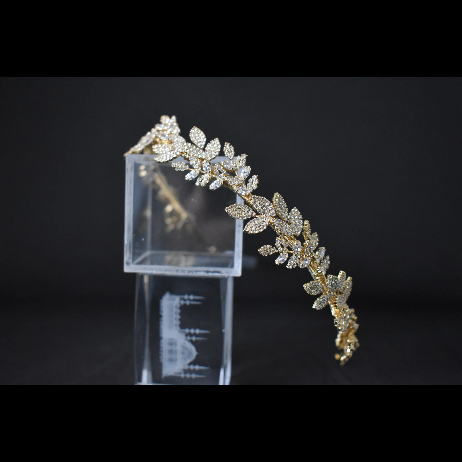 A one-line hairband using only soft zircon stones. The color of the plating can be changed to white or gold