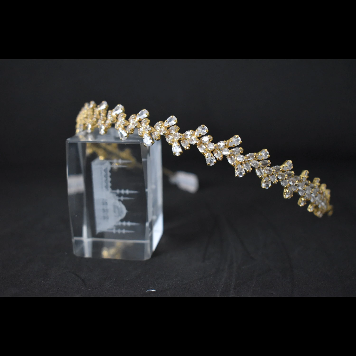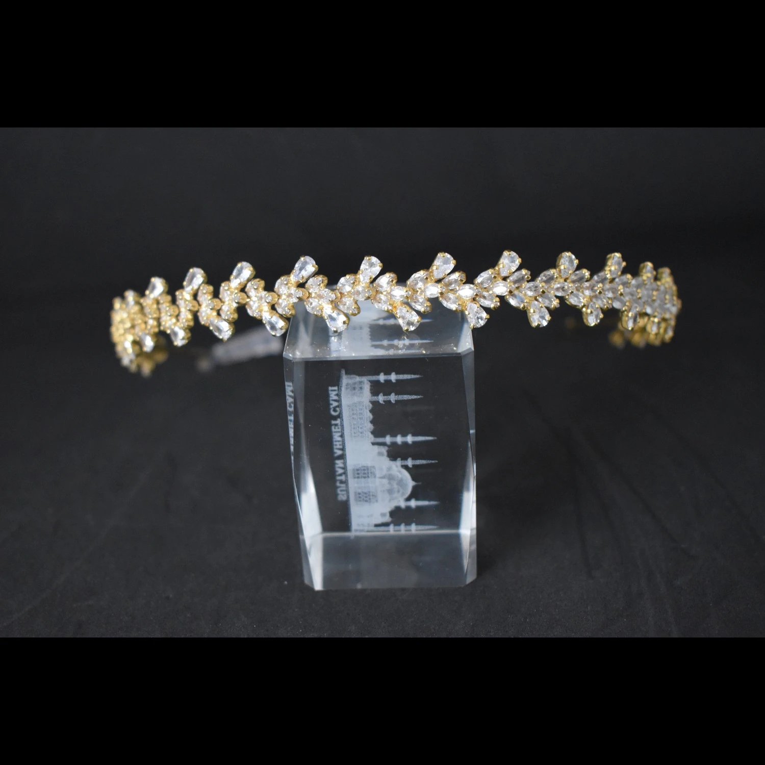 A non-flexible hairband using large zircon stones. The coating can be changed to white or gold