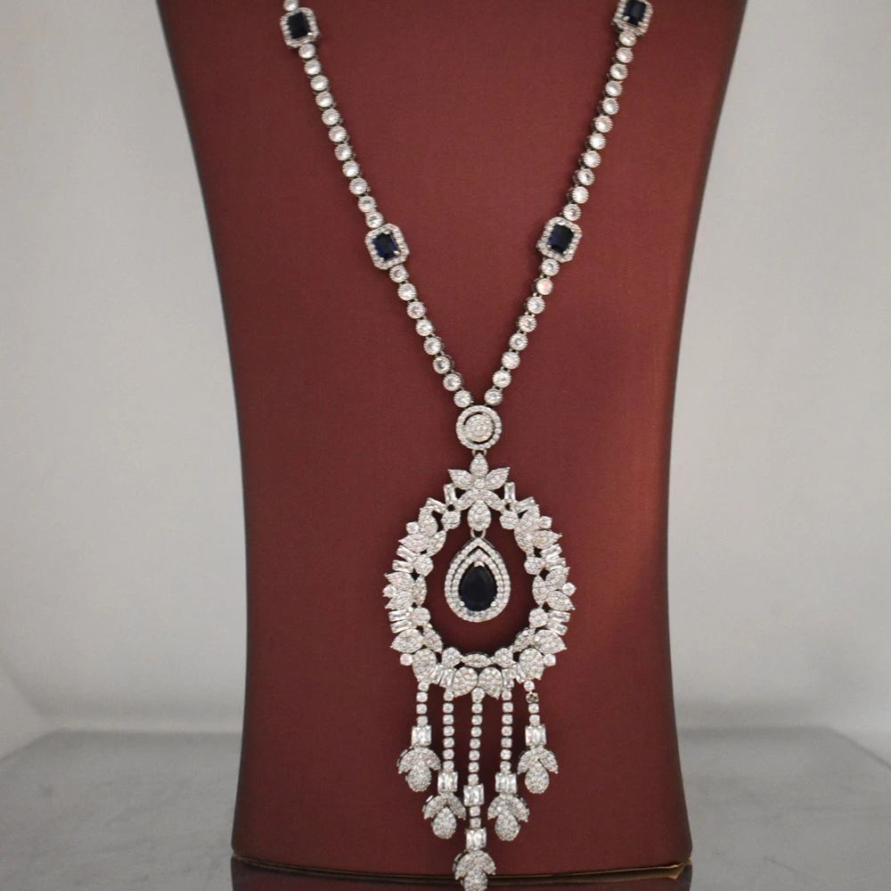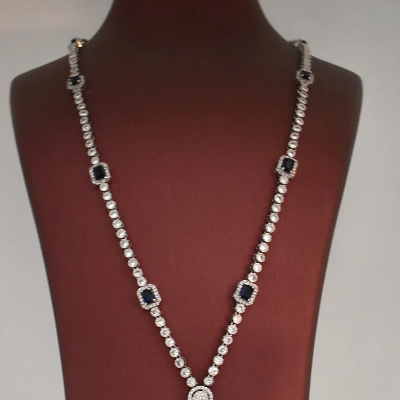 Long mirror set using rhodium plated zircon stones 5 years color survival guarantee