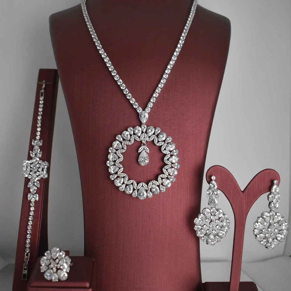 Long mirror set using rhodium plated zircon stones 5 years color survival guarantee
