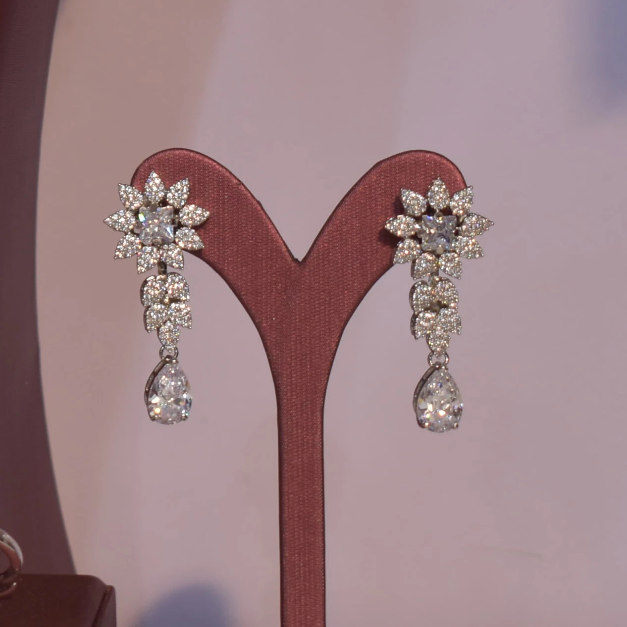 Long mirror set using rhodium plated zircon stones 5 years color survival guarantee