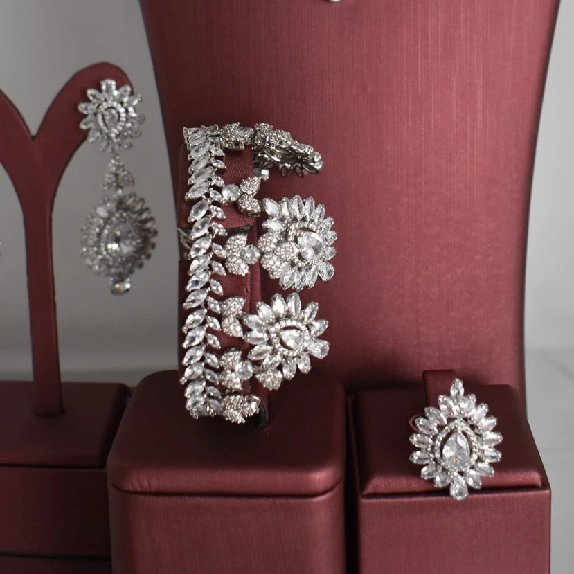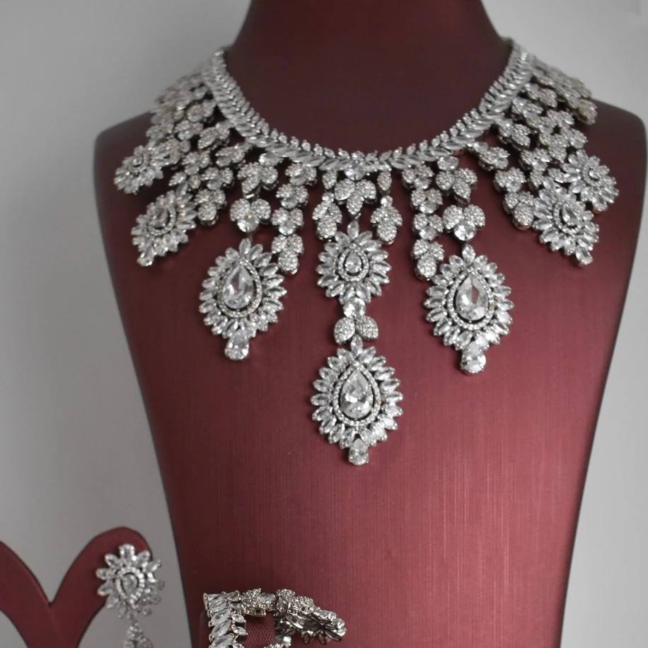 A set using large, soft zircon stones. The large stone can be changed to any color upon request, or the paint can be changed upon request