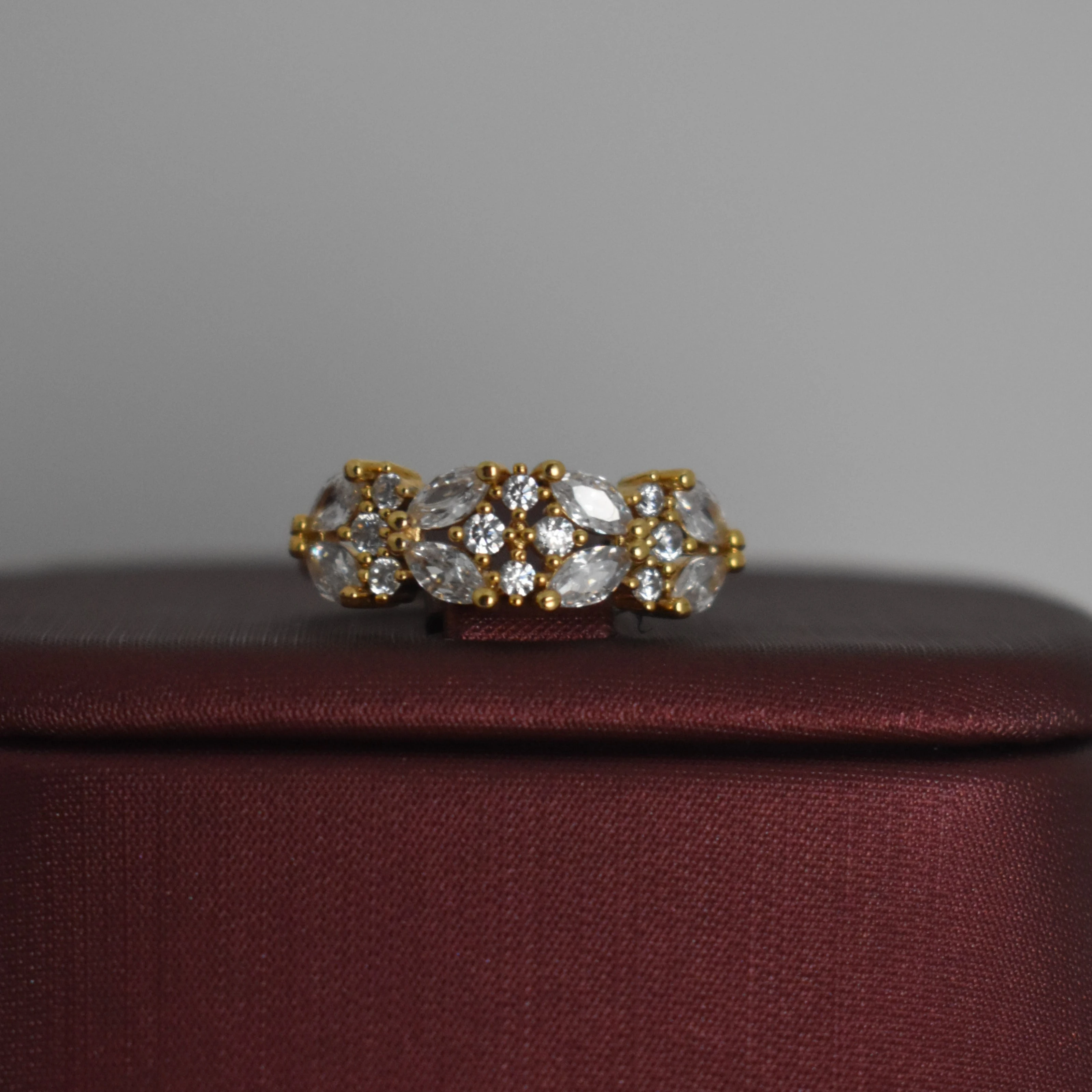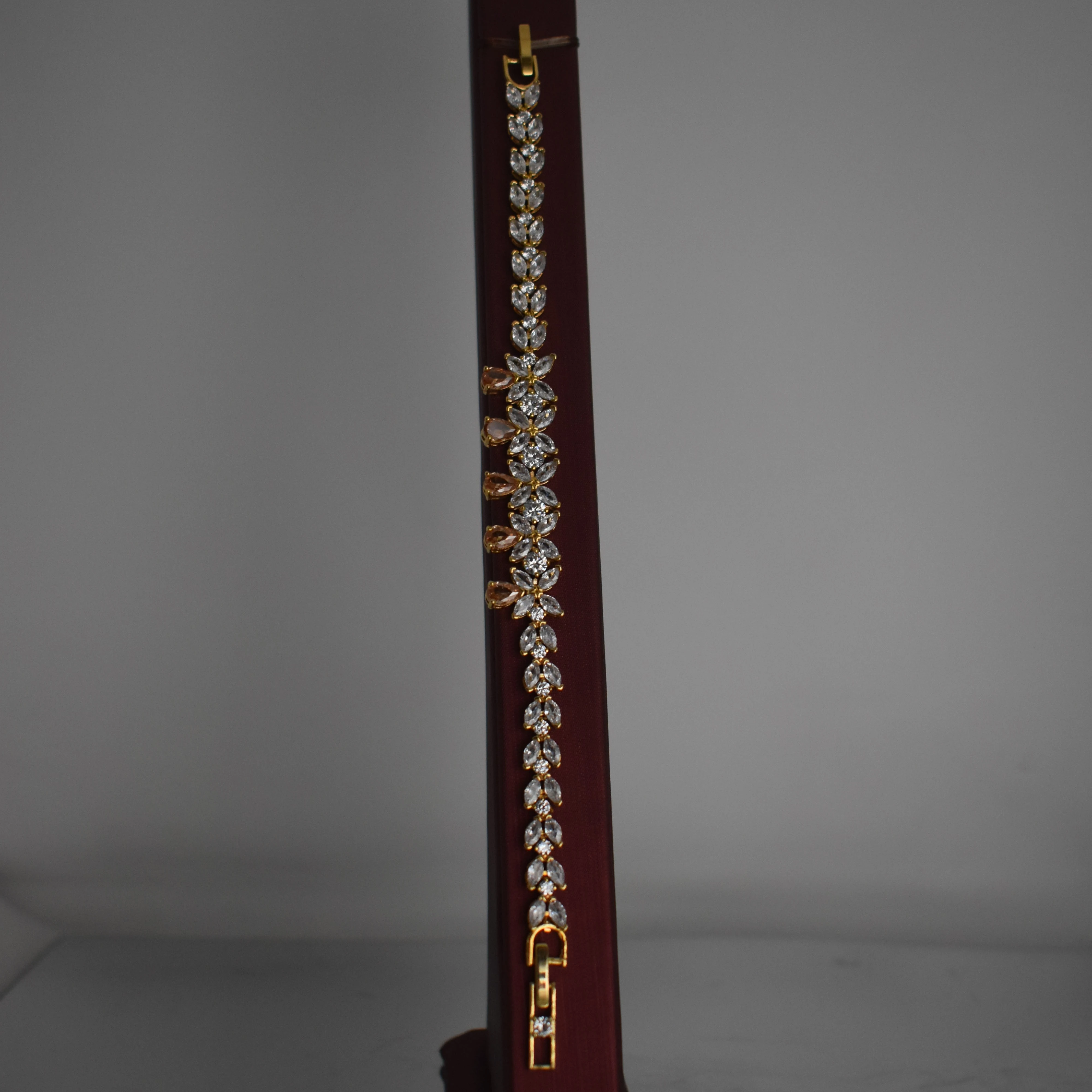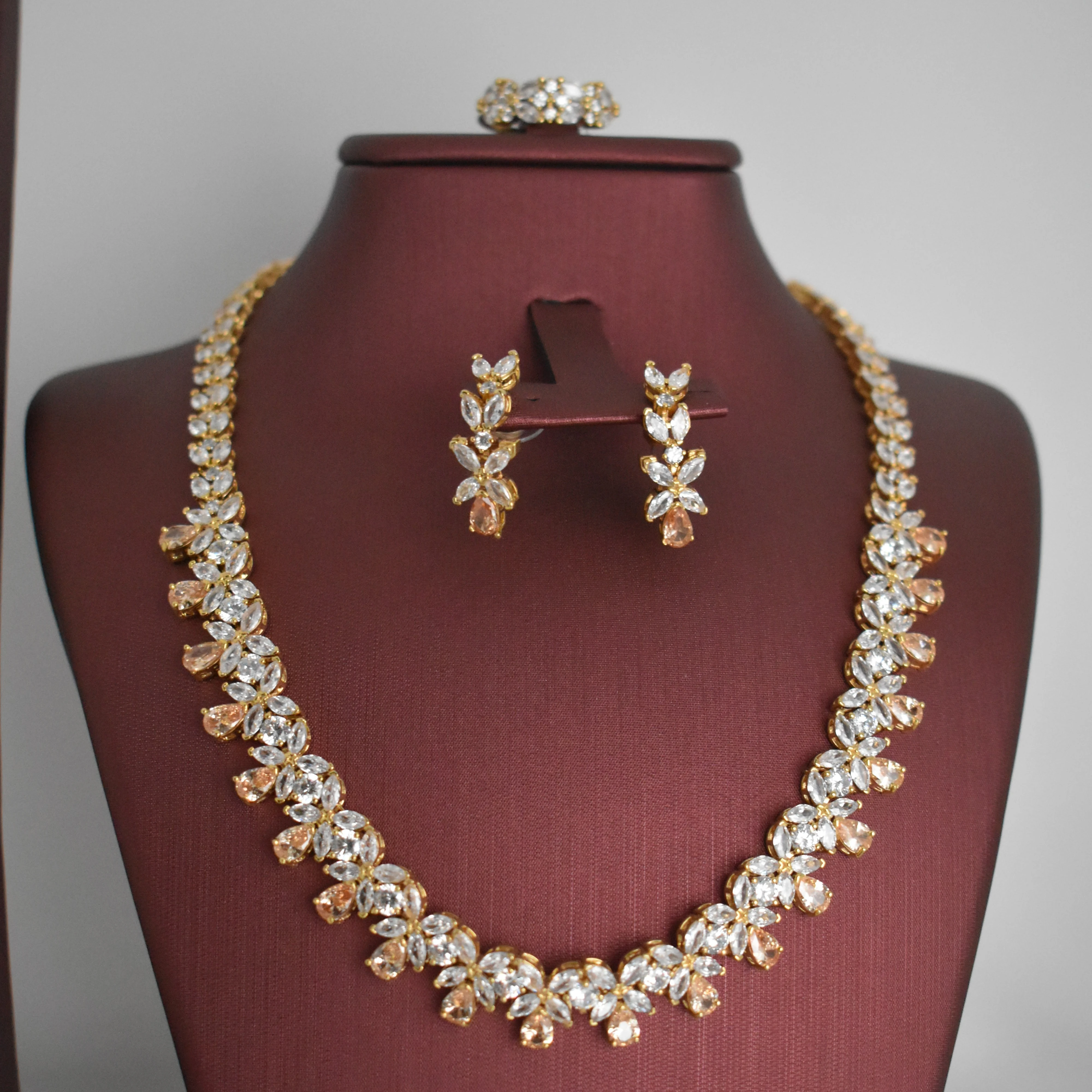 A soft tennis set consisting of four pieces plated with white or yellow gold upon request. The large zircon stone is available in different stone colors: blue, red, green, yellow, and blue.