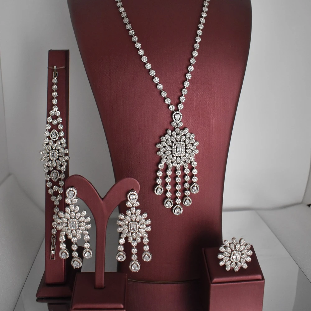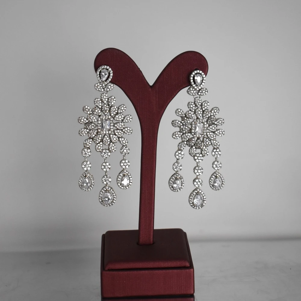 Long mirror set using rhodium plated zircon stones 5 years color survival guarantee