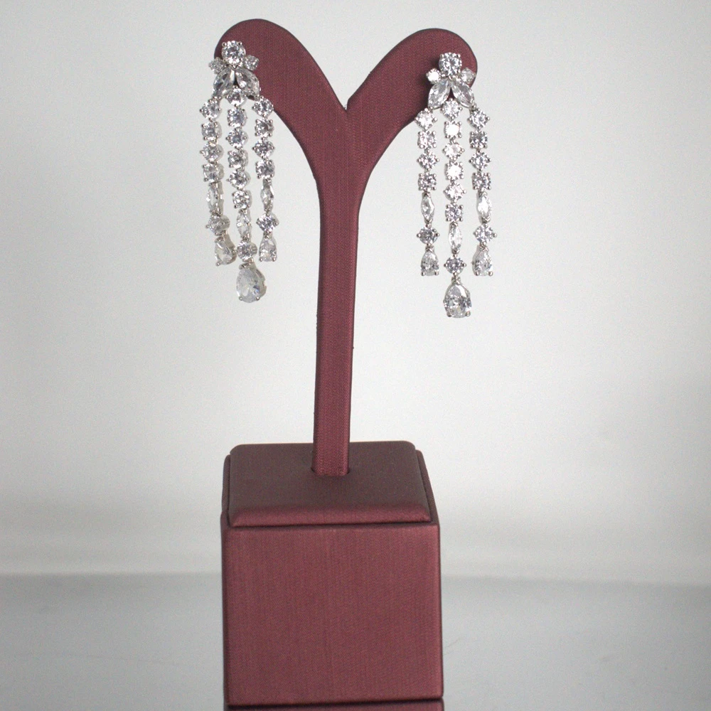 Rhodium-plated earrings studded with genuine zircon stones ensure color lasts two years