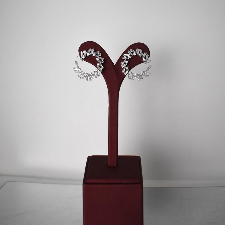 Rhodium-plated earrings studded with genuine zircon stones ensure color lasts two years